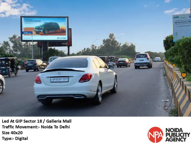 Are you looking for a prime advertising space to grab attention in one of the busiest areas in the NCR? Look no further than the "Sect-18 at GIP mall facing traffic from Noida to Delhi" billboard! Nestled at a strategic location, this digital billboard is your gateway to connect with potential customers as they travel between Noida and Delhi.